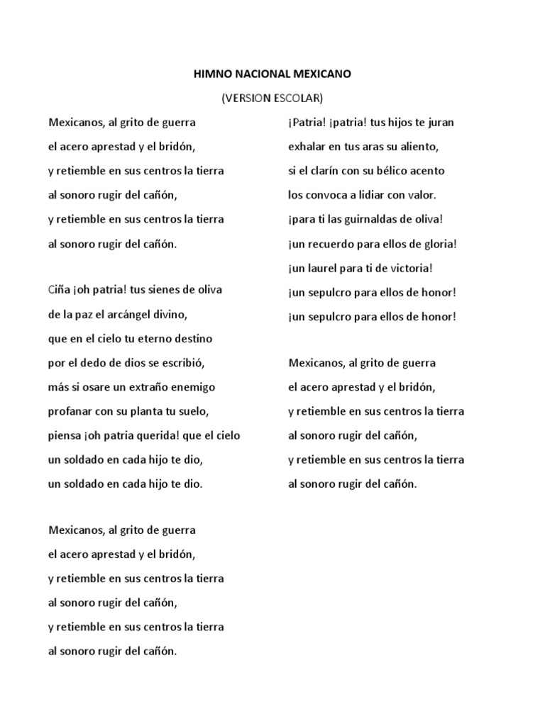 Himno Nacional Mexicano Letra Version Corta - Hzknfz Nfzjjum - El himno nacional mexicano es usado desde el año 1854, cuando se completó su composición la versión original del himno contenía, además del estribillo, diez estrofas.